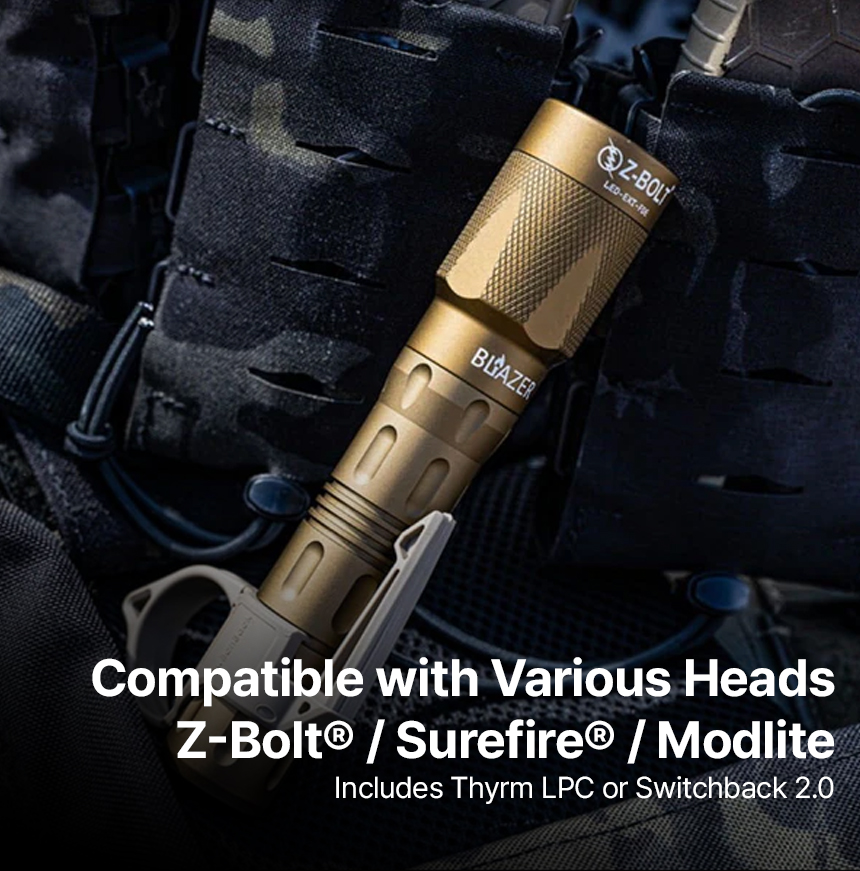 Fully compatible with Z-Bolt®, Surefire®, and Modlite light heads